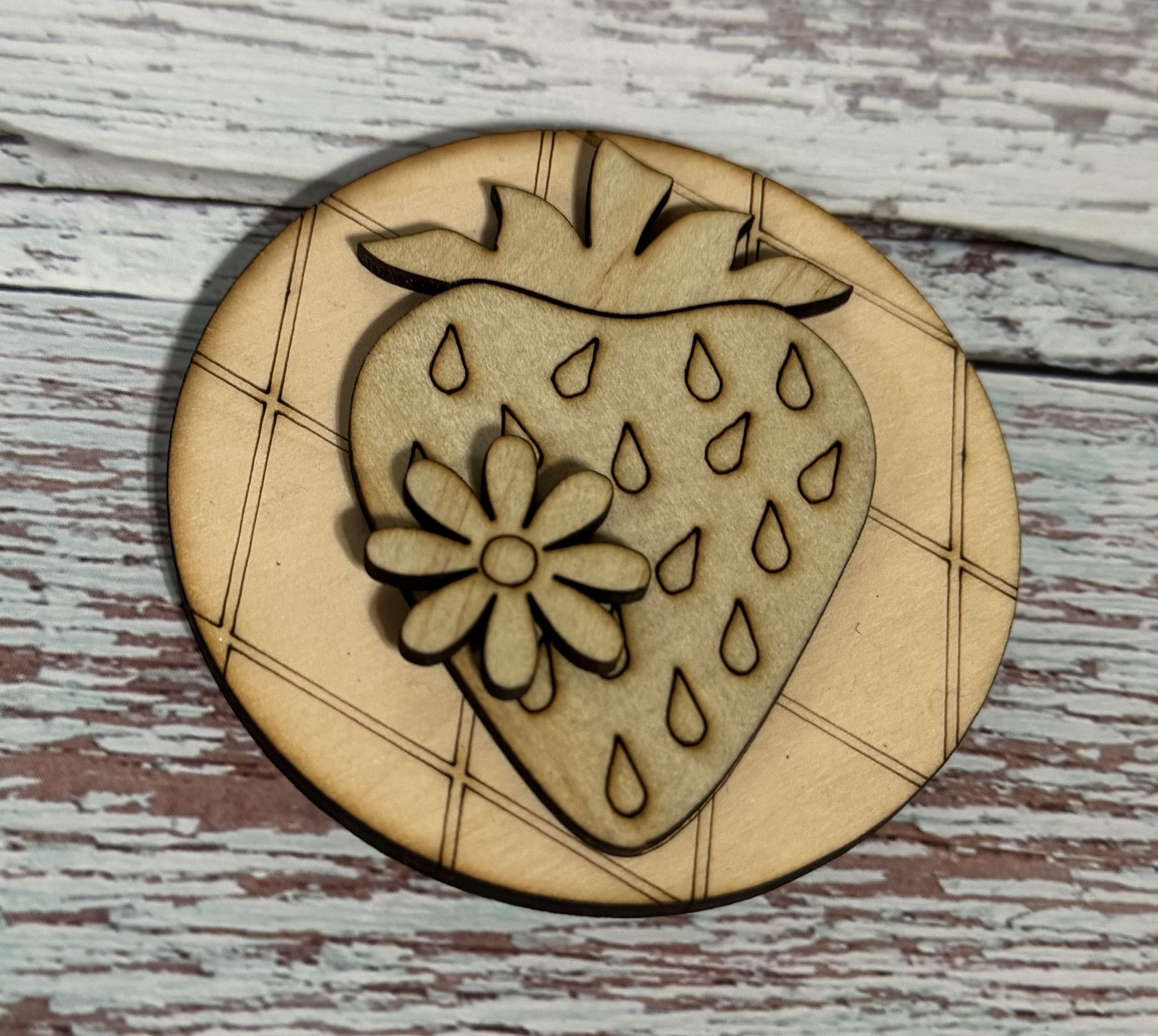 Laser cut, hand painted wooden round.