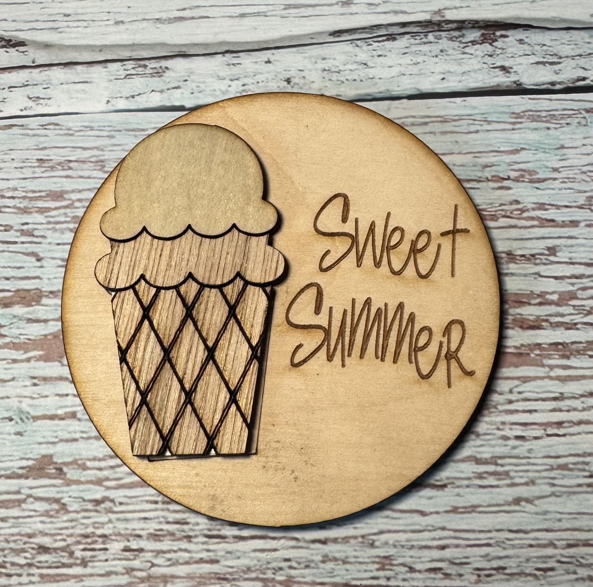 Laser cut, hand painted wooden round.