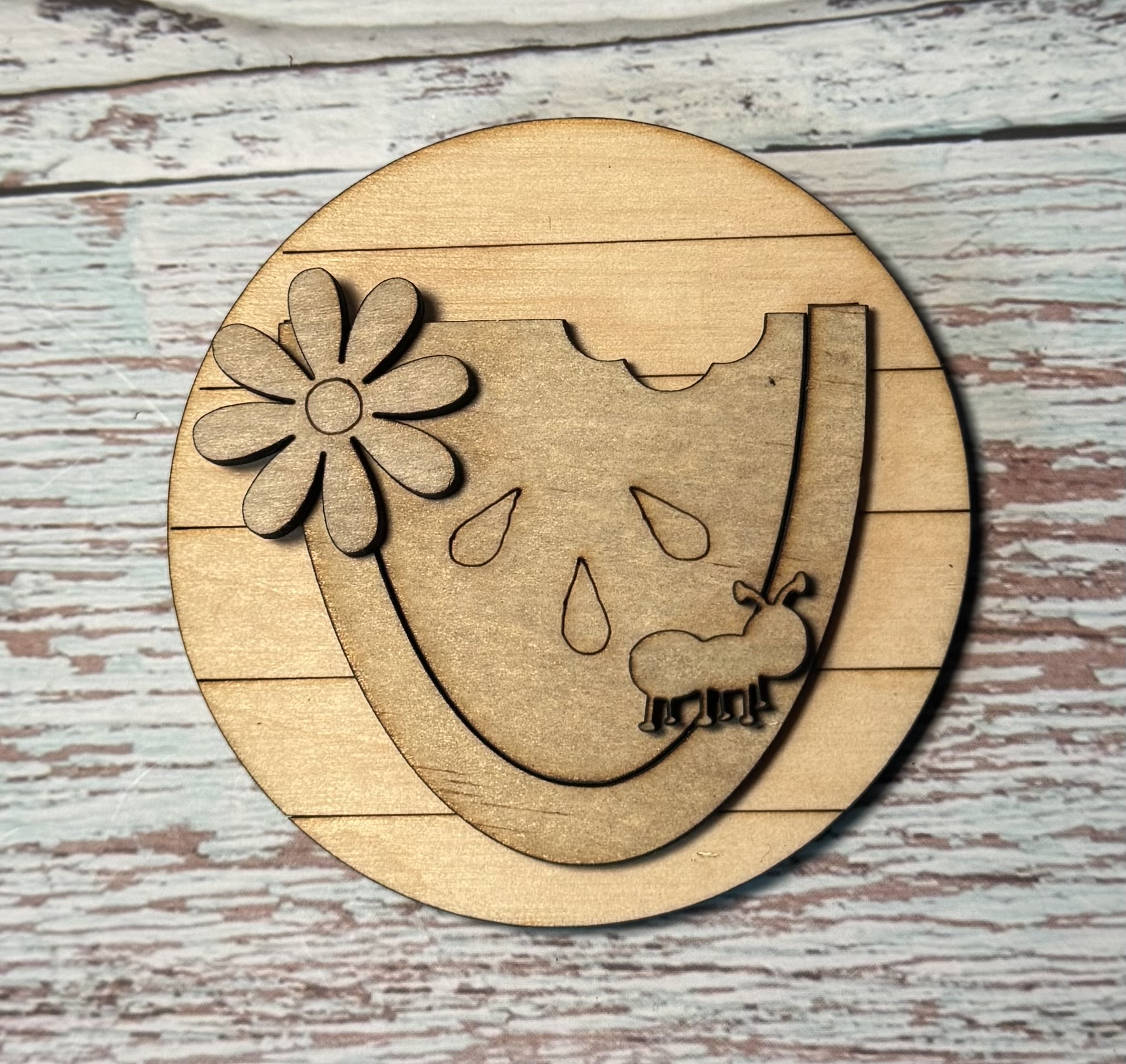 laser cut, hand painted wooden round
