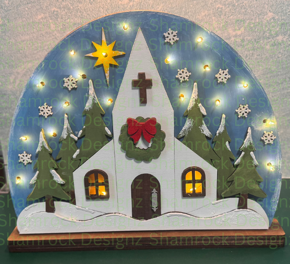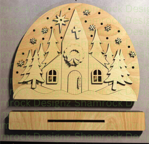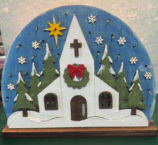 Approx. 8.5" tall x 10.5" wide Laser cut, Hand painted, layered wooden Shelf sitter.