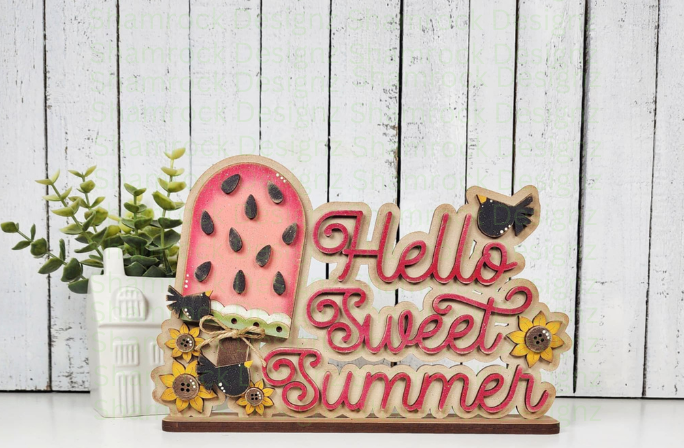 Choices either 5.8" tall X 9.4" Wide laser cut hand painted shelf sitter or DIY kit